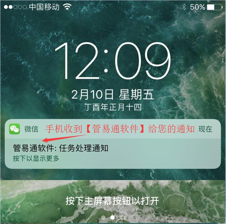 并且同时给您的微信发送一条通知。在您手机上,几秒钟内就可以收到这个通知。如下图: