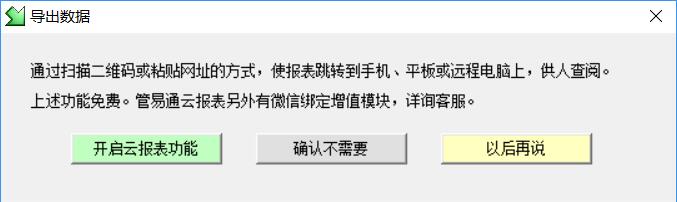 点击“开启云报表功能”之后,系统会弹出提示,再次点击“导出”按钮,会出现: