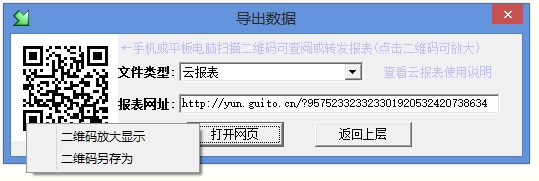 就是在管易通软件中,把相关表格内容上传到云端服务器上,系统会自动生成一个网址及一个二维码;