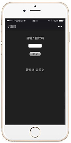 如果王总是第一次使用云签名功能,则会弹出如下界面,要求输入授权码。