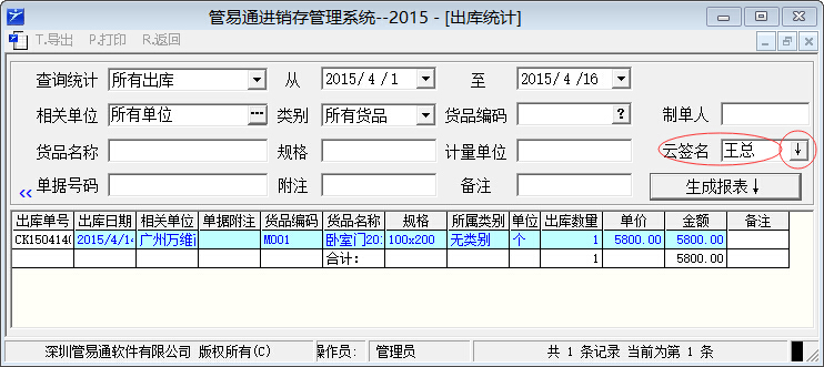 除了在单据列表界面可以按云签名筛选查找记录以外,我们还可以在入库统计表、出库统计表中,根据云签名记录筛选查找生成相应的报表。